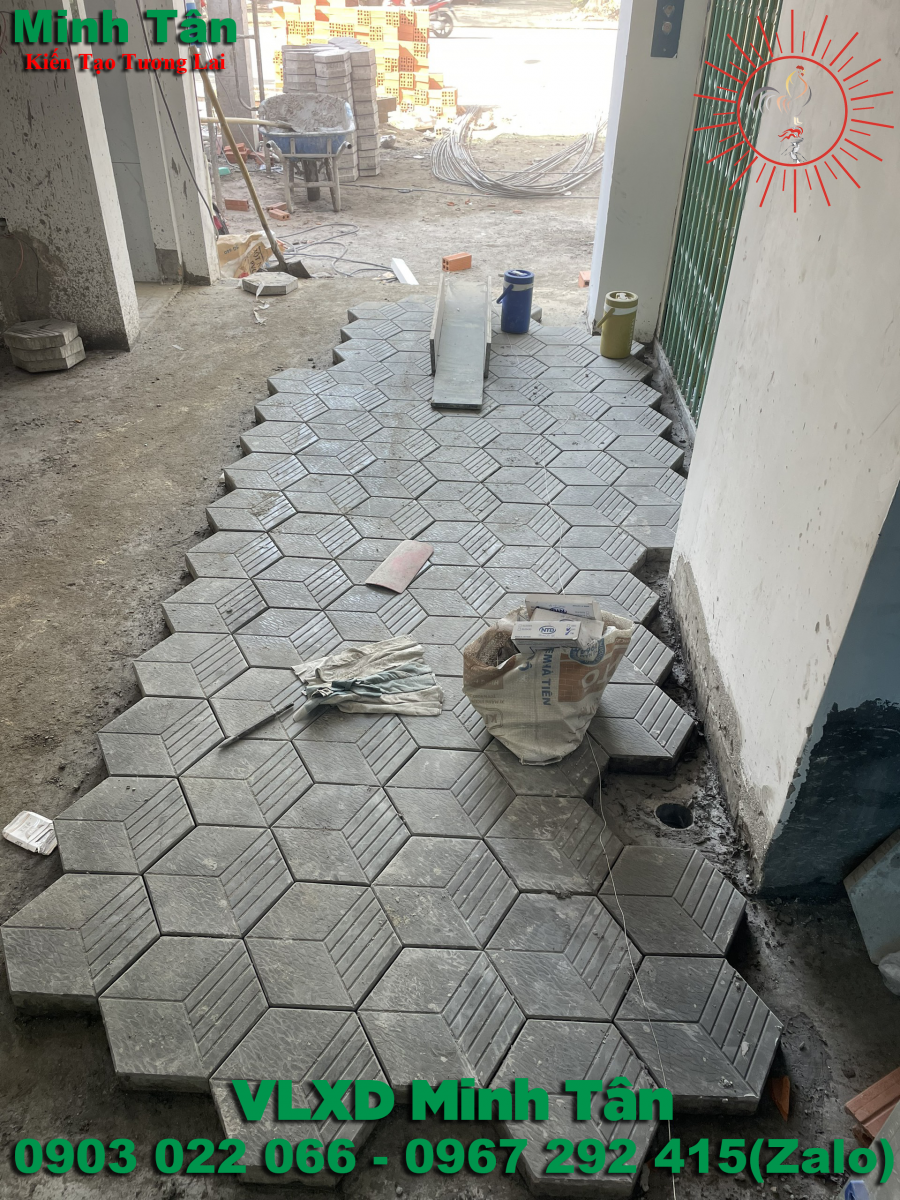 _ Công đoạn sau cùng là lát gạch đây là khâu khá quan trọng vì mang tới thẩm mỹ, khi đặt viên gạch đầu tiên bạn phải đảm bảo rằng nó đã được bóp ke từ trước và đã cân xứng 2 bên chưa ... vậy là nền của bạn đã được hoàn thiện.