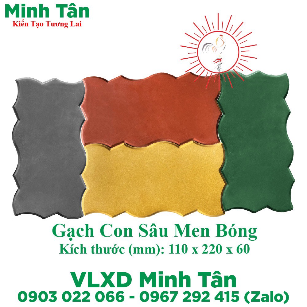 Gạch con sâu men bóng, gạch ziczac da bưởi tự chèn, được sử dụng lót vỉa hè, lót sân... phối cảnh tạo hình rất đẹp mắt. màu sắc đẹp đi kèm với chất lượng cao, mác bê tông cao cấp được sản xuất từ nguyên vât liệu theo công nghệ ép rung định hình nâng cao chất lượng sản phẩm.