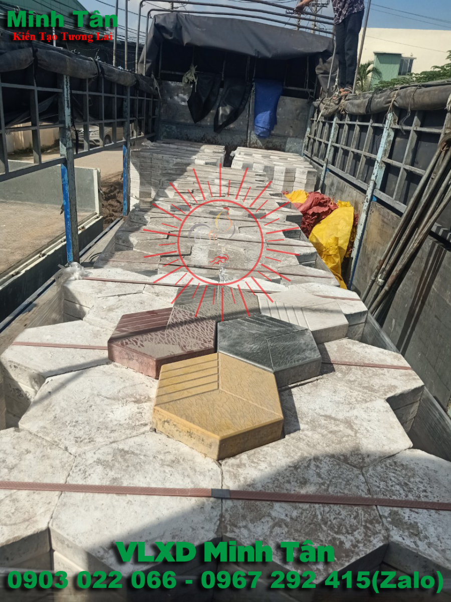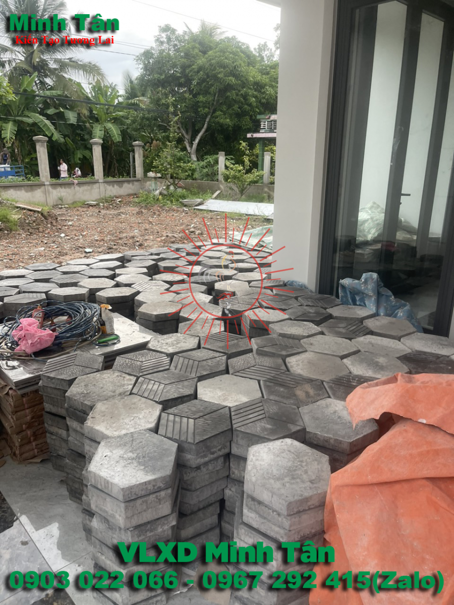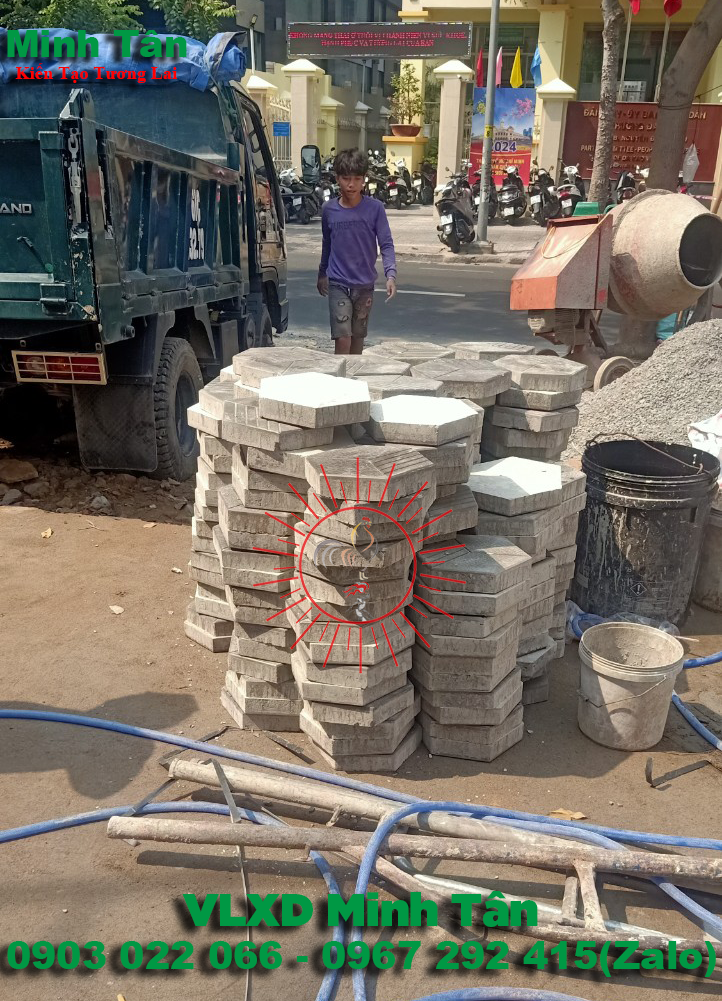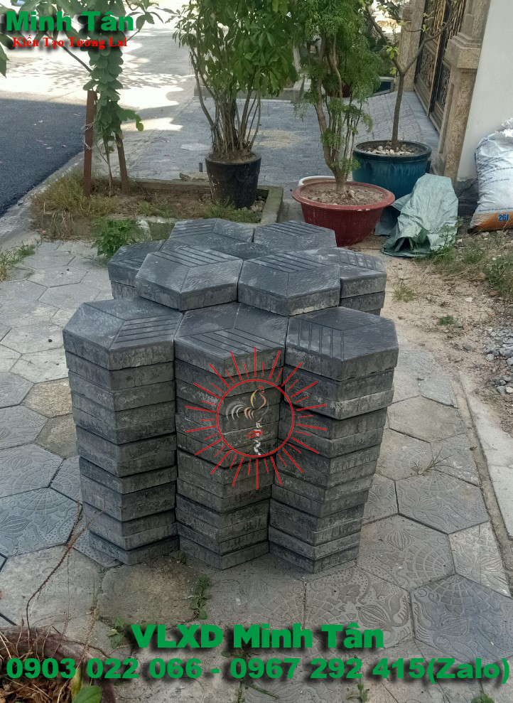 Gạch lục giác bê tông tự chèn là mẫu sản phẩm mới nằm trong danh mục gạch bê tông tự chèn được tạo ra từ đá mi sàng , đá mi bụi , cát , xi măng , màu , nước hóa chất , keo tạo bóng bề mặt được định lượng theo công thức tỷ lệ cấp phối nhất định và cho vào máy trộn bê tông rồi rót vào khuôn nhựa định hình sau đó đặt trên bàn run cho ra sản phẩm không những có bề mặt đẹp bóng mịn mà còn tạo độ rắn chắc liên kết từng vữa bê tông và nguyên liệu bên trong sản phẩm khi thành phẩm có độ dày và độ bền vĩnh cữu .