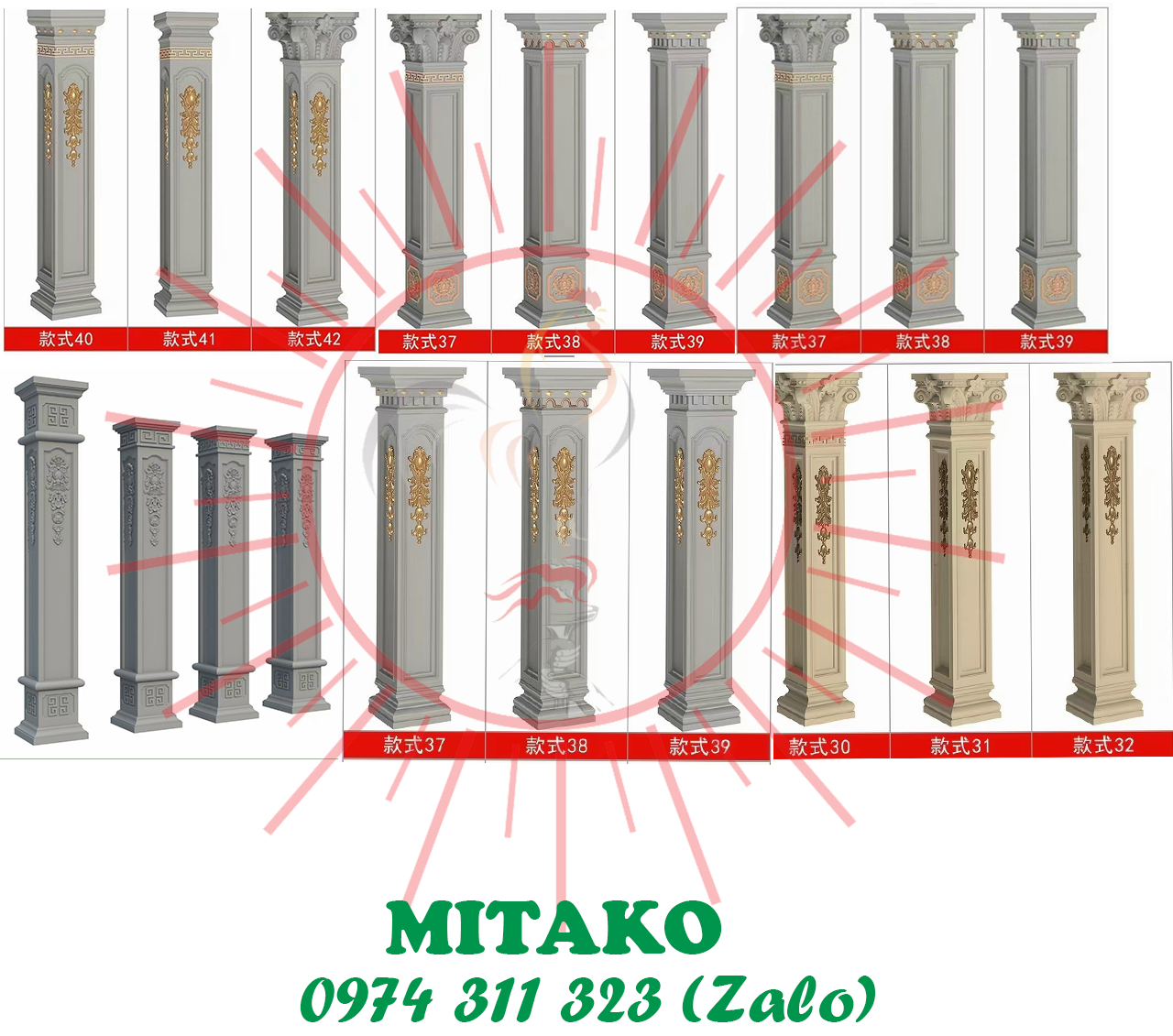 Công ty vật liệu xây dựng MiTaKo chuyên sản xuất những sản phẩm làm từ bê tông cốt sắt, bê tông ly tâm, xi măng cốt sợi thủy tinh với số lượng lớn luôn được quý khách hàng tin dùng như hàng rào bê tông ly tâm, lục bình bê tông ly tâm, trụ cột bê tông, hàng rào đúc sẵn, con tiện xi măng, phù điêu phào chỉ hoa văn xi măng cốt sợi thủy tinh, đầu cột hoa văn cốt sợi, con sơn A bê tông cốt sắt, chân gấu con bọ, chậu hoa, trụ cột lan can ... .. chuyên cung cấp tất cả các sản phẩm bằng đá tự nhiên chất lượng uy tính như con tiện bằng đá trắng, lục bình đá, quả cầu đá, tay vịn đá, đài phun nước bằng đá, kỳ lân bằng đá, tùy hưu bằng đá ngọc hoàng long.