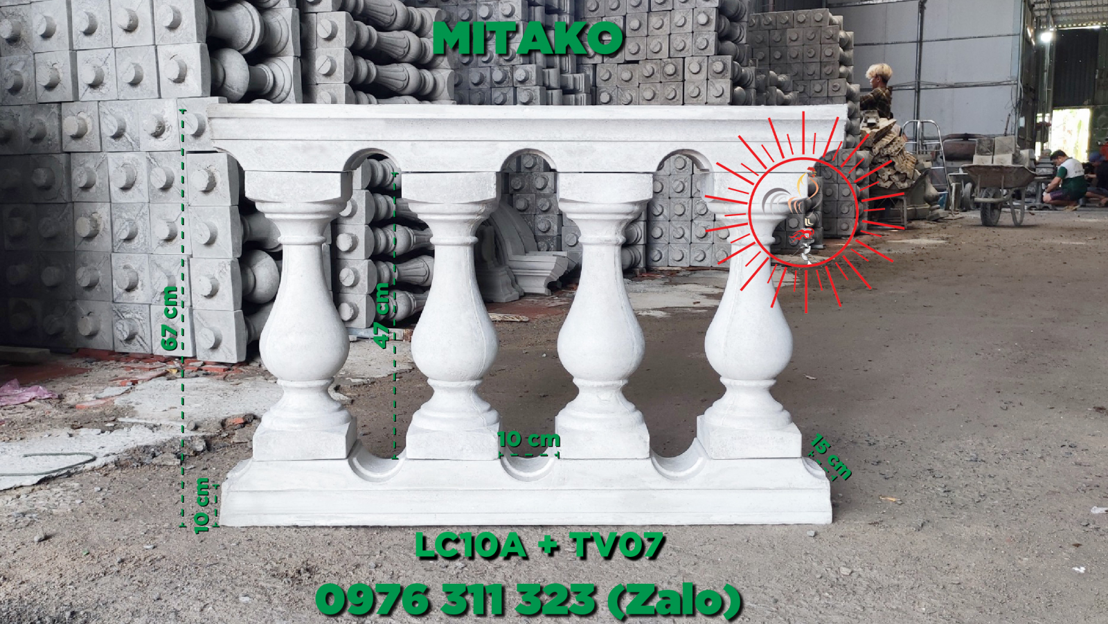 Mẫu lục bình tuy thấp nhưng có phần bụng to làm cho sản phẩm trở lên cứng cáp phù hợp cho các công trình làm ban công hoặc lan can sân thượng .