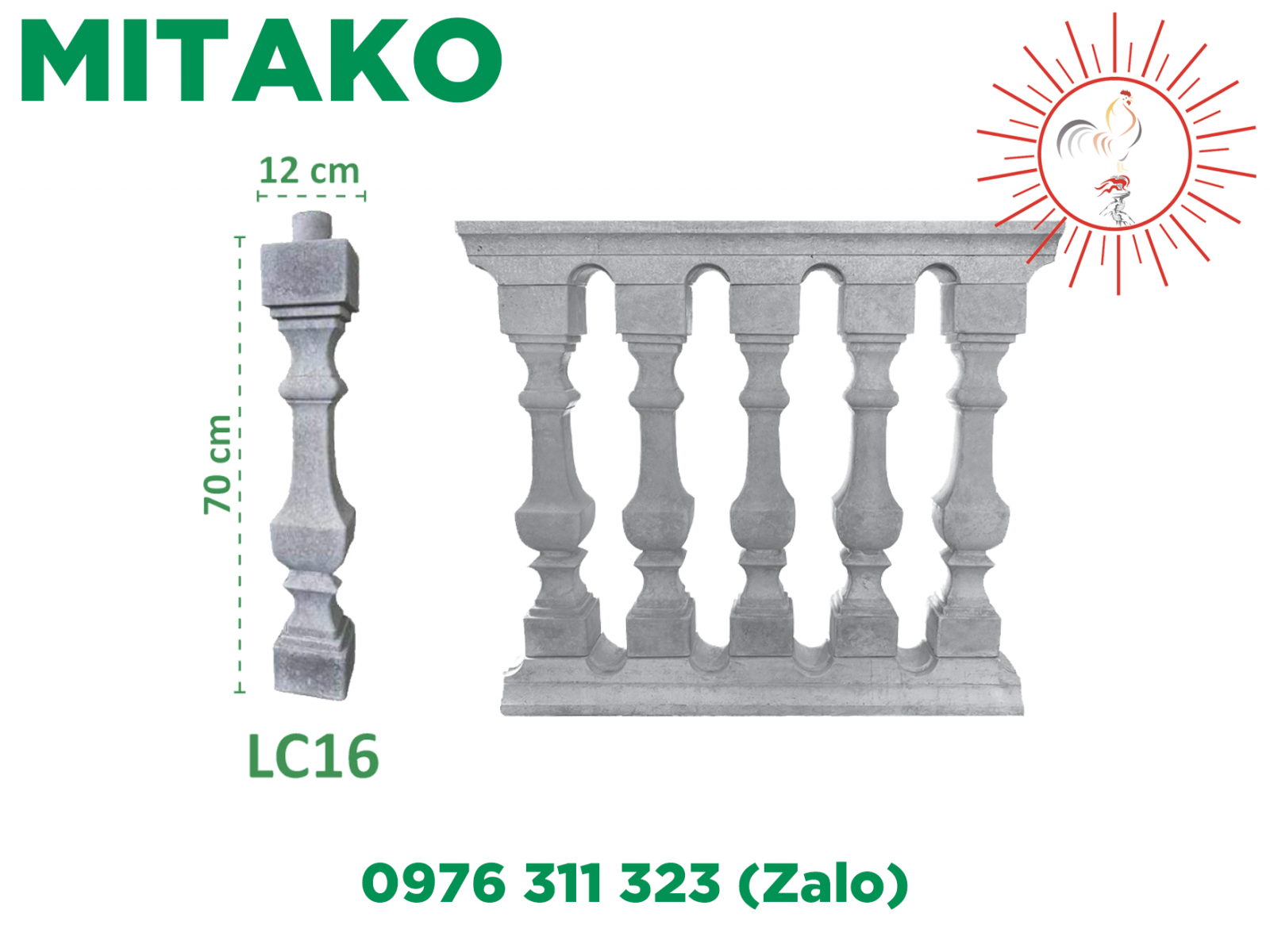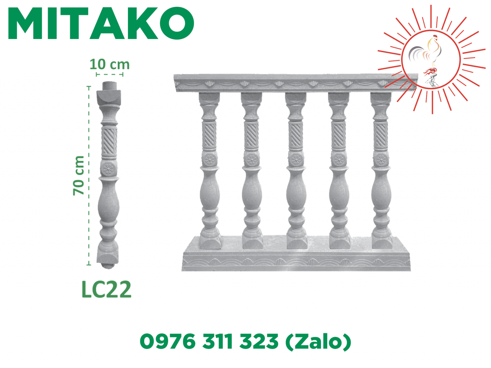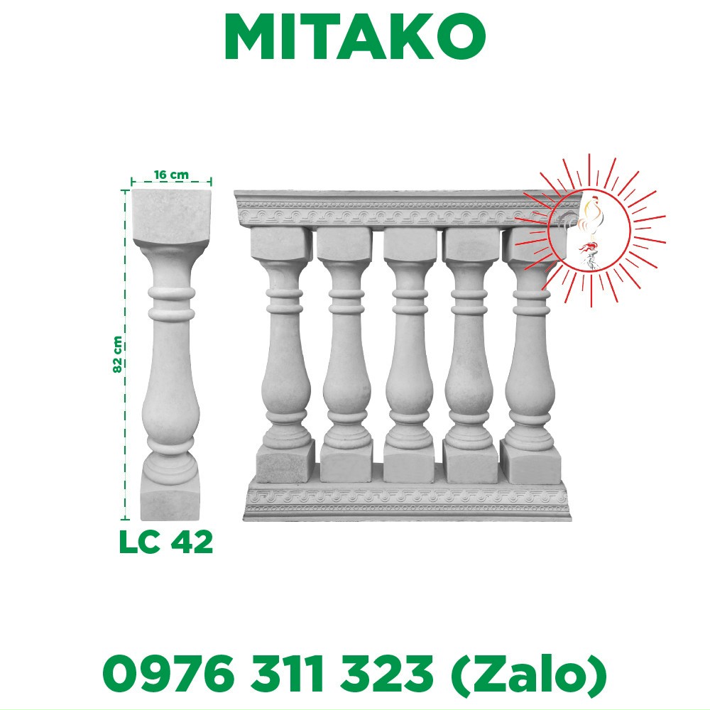 Lan can lục bình con tiện bê tông ly tâm sản xuất từ các nguyên liệu chính xi măng cộng với cát , đá và nước theo tỉ lệ chuẩn trộn đều cho thành hỗn hợp bê tông mác cao , qua từng khâu sản xuất tỉ mỉ cho ra sản phẩm không những có độ bền từ bên trong mà còn mang đến thẩm mỹ cao nhờ bề mặt láng mịn bên ngoài , nhờ độ bóng giúp tiết kiệm chi phí sơn , chống bám bụi , chịu được nhiệt độ cao , chịu luôn cả nắng mưa thời tiết nên rất được quý khách hàng tin dùng nhiều cho những ứng dụng ngoài trời , nhờ vào những ưu điểm nổi bật như trên mà lục bình con tiện bê tông ly tâm đang và đã trở thành một sự lựa chọn ưu tiên hàng đầu để sử dụng trang trí nội ngoại thất cầu thang , ban công , lan can trong xây dựng nhà ở và các công trình từ nhỏ đến lớn trên thị trường hiện nay . Lục bình con tiện bê tông ly tâm của công ty MiTaKo được sản xuất từ máy quay ly tâm tốc độ cao , luôn sử dụng vữa bê tông đủ nước , tránh sự úa rỉ của 3 lõi sắt bên trong , giúp gia tăng khả năng chịu lực của sản phẩm để khi sử dụng cho lan can , cầu thang hay ban công nhà được kiên cố bền vững hơn , lực văng của máy quay ly tâm làm cho các vữa bê tông bên trong sản phẩm nén chặt ép ra thành khuôn , đẩy thu và làm vỡ bọt khí , khiến sản phẩm được ép nén tạo nên độ rắn chắc bền bỉ giúp những hoa văn bề mặt sản phẩm được rõ nét đẹp hơn mà sản xuất thủ công khó làm được.